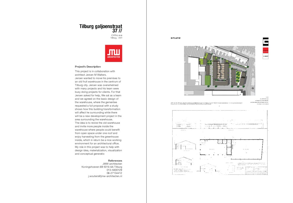 Jeroen wanted to move his premises to an old fruit warehouse in the centrum of Tilburg city. Jeroen was overwhelmed with many projects and his team were busy doing projects for clients. For that Jeroen asked for help, We sat as a team and we agreed on the basic design of the warehouse, where the gementee requested a full proposal with a study shows how this building transformation will affect he surrounding while there will be a new development project in the area surrounding the warehouse.